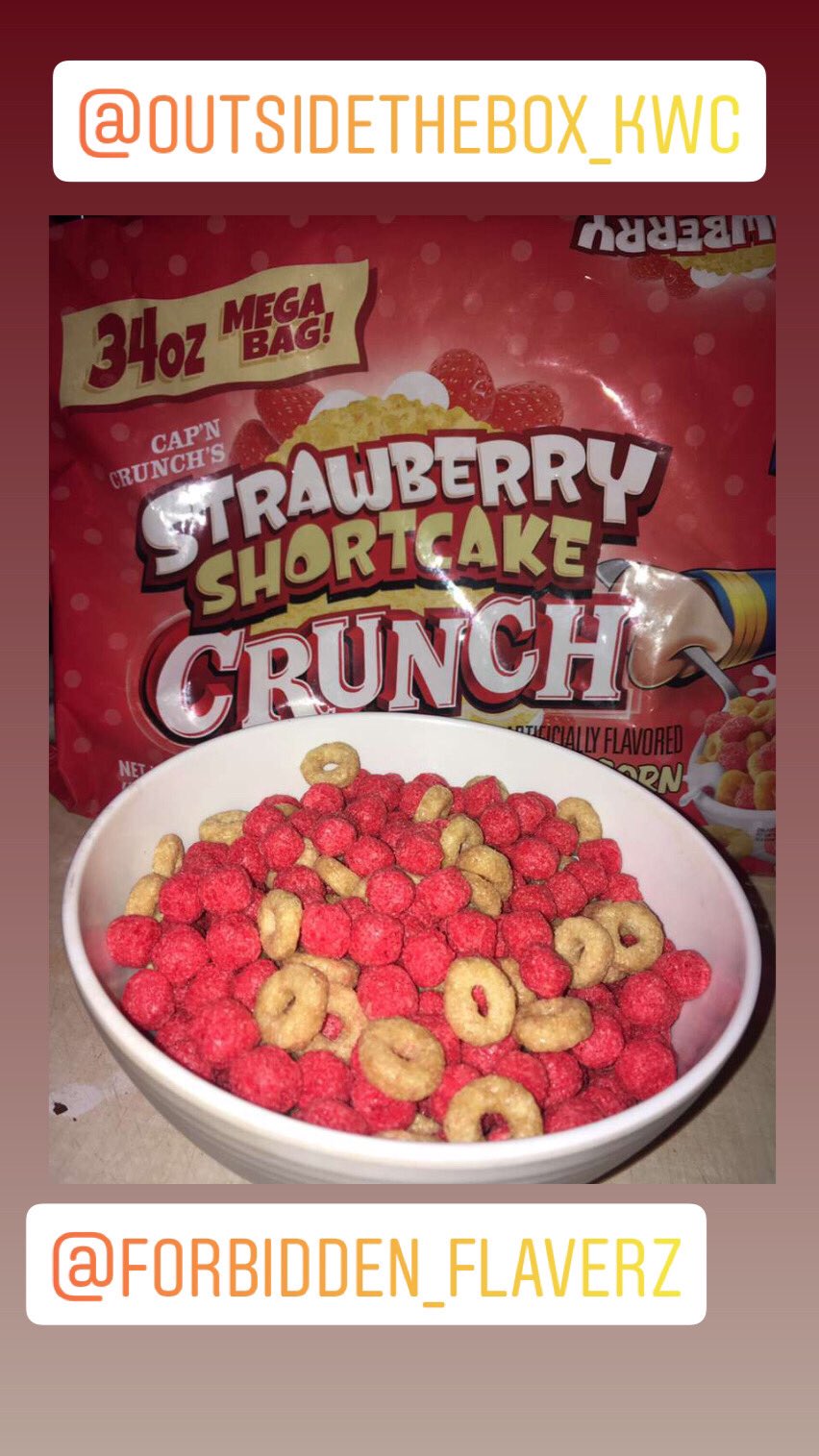 Strawberry Shortcake Crunch Cereal | MrBreakfast.com Strawberry Shortcake Crunch From: Quaker Introduced in 2019 See the Top 100 Breakfast Cereals. As of early 2019, this Cap'n Crunch cereal seemed to only be available in a 34 ounce mega bag. It's described on the front of the package as a "naturally and artificial flavored sweetened corn and oat cereal."