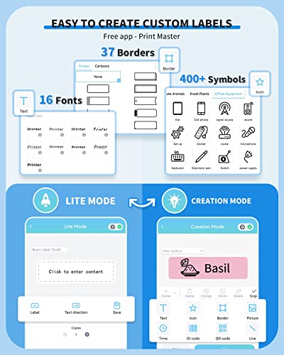 Amazon.com : Label Maker Machine with Tape,Sticker Maker,Mini Label ... Bluetooth Label Maker Machine 1- Use the mobile APP to edit, you can customize the content you want to print, including text, date, border, sticker, line, icon, QR code, barcode, graffiti, serial number. Switch between 9 languages and 15 font options, freely adjust the size and position.