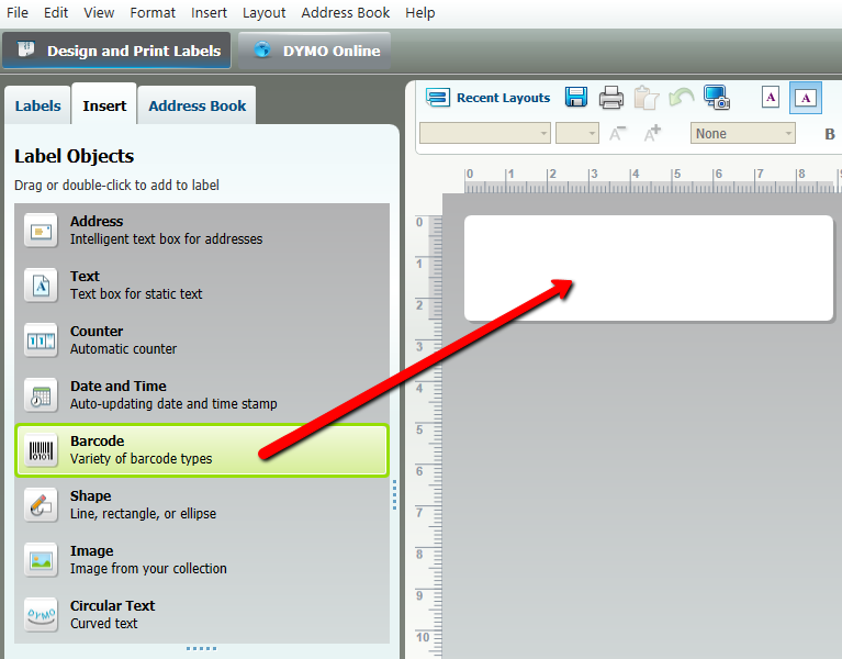 Printing multiple barcode labels using the DYMO Utility In this first step, you'll create a barcode label in your DYMO software. If you've not already done so, you'll need to download the latest DYMO version by clicking on this link. Open the DYMO Label v.8 software. Select the Labels tab at the top left, then scroll down to Small 1”x2-1/8” (SKU 30336) and choose the blank label.