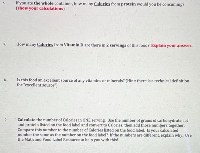 How to calculate calories from protein on a food label. Food Labels Guide & Examples | How to Read Nutrition Labels - Video ... Food labels can be found on most packaged food items as required by the U.S. Food and Drug Administration (FDA). Food labels provide consumers with information about the nutrient content of a product. How to calculate nutritional value of food? How can you figure out how many calories are in a food? To calculate this, divide the calories from fat in a food or drink by the total calories (found on the product's food label) and multiply by 100. Divide 60 by 300 and multiply by 100 if a 300-calorie item has 60 calories from fat. How can I keep track of my calories? How to Understand and Use the Nutrition Facts Label | FDA - U.S. Food ... That is two times the calories and nutrients shown in the sample label, so you would need to double the nutrient and calorie amounts, as well as the %DVs, to see what you are getting in two... Why Calorie to Protein Ratio Matters for Weight Loss Here's how to calculate the percentage of calories from protein in a food: Check the nutrition label, take the grams of protein per serving and multiply by 4 to get calories from protein. Then...