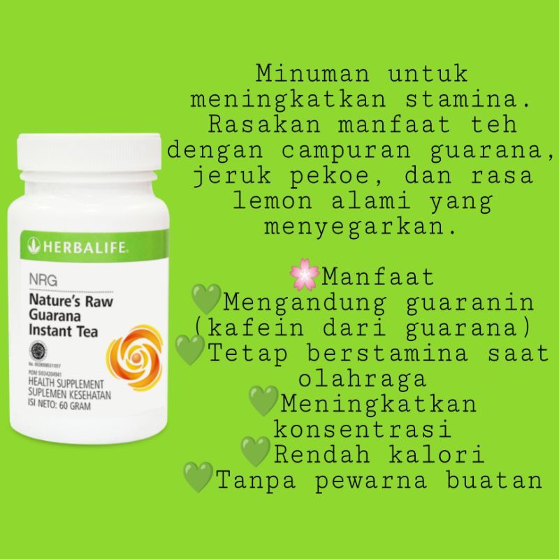 Herbalife Ingredients and Products: an Overview - Healthtian This tea is available in both bottles and packets. N-R-G (short for Nature's Raw Guarana) is an Herbalife Nutrition instant tea original. It contains orange pekoe tea and guarana—and zero calories! This tea is for people who need a little mental boost and contains a lower level of caffeine, perfect for a midday pick-me-up.