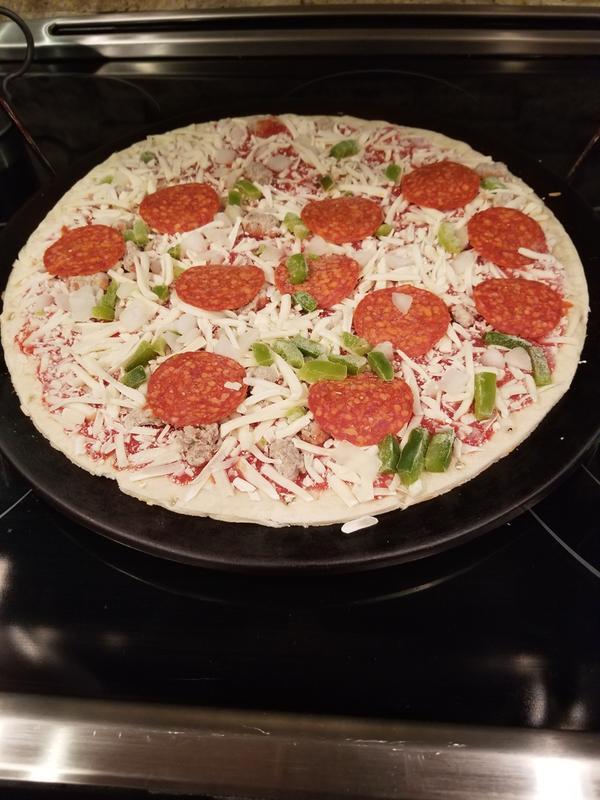 Thin Crust Supreme Frozen Pizza | Official JACK'S® PIZZA - goodnes MADE WITH MADE WITH REAL CHEESE GREAT ON THE GRILL! COOKS IN OVEN 13 MINUTES NUTRITION COOK IT OR GRILL IT Conventional Oven Instructions Step 1 Preheat oven to 425°F. Remove pizza from overwrap and cardboard. Step 2 Place pizza directly on center oven rack. Step 3 Bake pizza for 13 minutes or until cheese is melted and edges are golden brown.