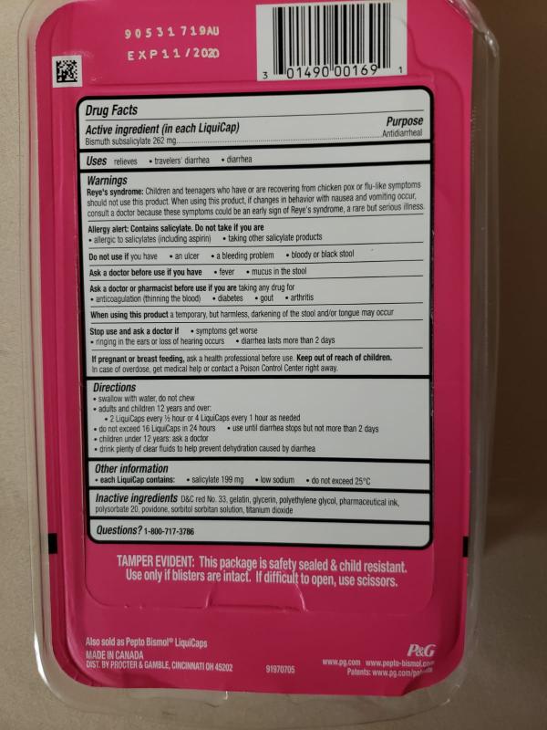 Pepto bismol ingredients label. Label: PEPTO-BISMOL DIARRHEA- bismuth subsalicylate tablet each caplet contains: calcium 54 mg - salicylate 199 mg - very low sodium - avoid excessive heat (over 104°F or 40°C) Inactive ingredients calcium carbonate, D&C Red No. 27 aluminum lake, magnesium stearate, mannitol, microcrystalline cellulose, polysorbate 80, povidone, silicon dioxide, sodium starch glycolate Questions? 1-800-717-3786 +30 What Does Pepto Bismol React With Ideas - Pittsburgh Post-Gazette 34 Pepto Bismol Warning Label Labels Database 2020. Pepto bismol is particularly designed to treat acid conditions in the. Experts believe that pepto bismol effectively treats gas and digestive problems by preventing the bacteria e. ... Medical ingredient in pepto bismol. Let your doctor know right away if you have any unusual or unexpected ... Children's Pepto Antacid for Upset Tummies - Pepto Bismol Get relief for children's upset tummies with a Children's Pepto Antacid product made for children in a flavor they'll love. DailyMed - PEPTO DIARRHEA- bismuth subsalicylate suspension Inactive ingredients benzoic acid, D&C Red No. 22, D&C Red No. 28, flavor, gellan gum, magnesium aluminum silicate, methylcellulose, salicylic acid, sodium salicylate, sorbic acid, sucralose, water Questions? 1-800-717-3786 SPL UNCLASSIFIED SECTION DIST. BY PROCTER & GAMBLE, CINCINNATI OH 45202 PRINCIPAL DISPLAY PANEL - 118 mL Bottle Label