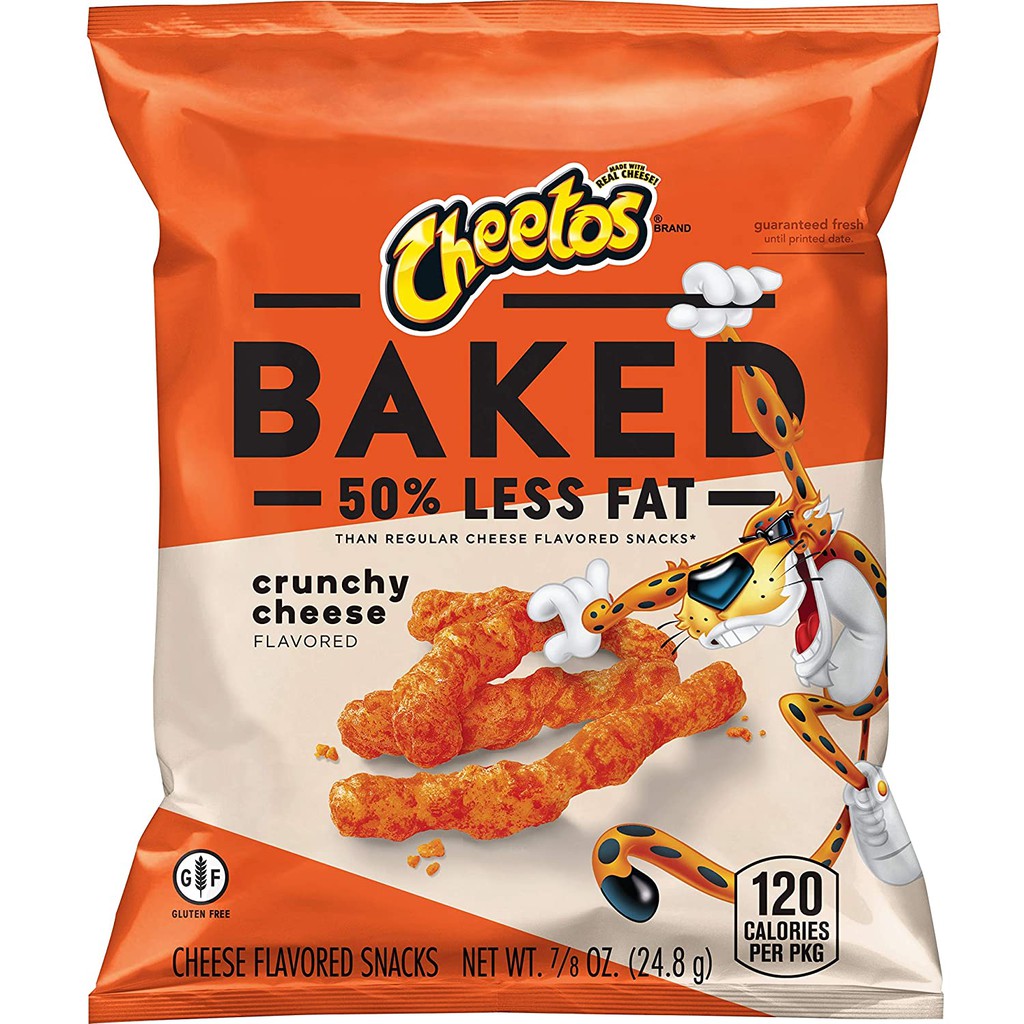 CHEETOS ® Baked Crunchy Cheese Flavored Snacks CHEETOS® Baked Crunchy Cheese Flavored Snacks are dangerously cheesy and 50% less fat than regular cheese flavored snacks. You can let your inner cheetah run. ... tells you how much a nutrient in a serving of food contributes to a daily diet. 2,000 calories a day is used for general nutrition advice. All products are labeled accurately with ...