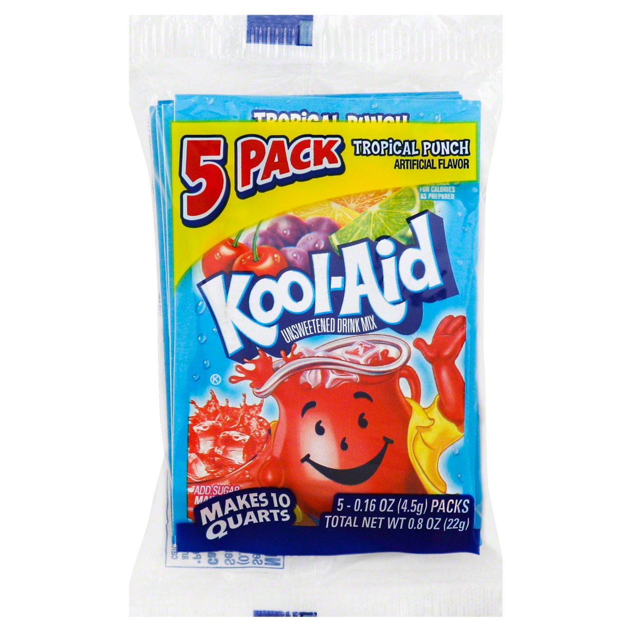› ip › Kool-Aid-Jammers-TropicalKool-Aid Jammers Tropical Punch Artificially Flavored Drink ... Kool-Aid Jammers Artificially Flavored Tropical Punch Drink Pouches deliver fun with a sweet blend of mixed fruit flavors. Our delicious kids drink contains 75% less sugar than leading regular sodas (per 12 fl oz, this product 10g total sugar, leading regular sodas 40g total sugar), making it a great artificially fruit flavored drink for kids.