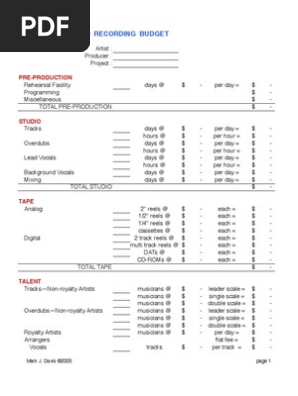 Music recording budget template