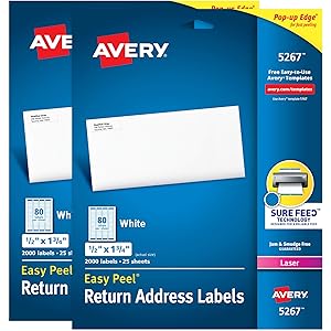 Avery Label Sizes Search | Find The Right Size | OfficeCrave.com Avery labels typically come in 8.5" x 11" sheets with an even number of labels on each sheet. Depending on the size of each label, there may be more or fewer labels on any given sheet. Avery Labels usually available in the following labels per sheet configurations: 4 per sheet. 6 per sheet. 8 per sheet. Amazon.com: AVERY 5267 Easy Peel Return Address Labels, Laser, 1/2 x 1 ... Avery 5267 bright white laser printer labels are a great solution for your address and shipping label needs. They're compatible with virtually any laser printer, as well as the templates in Microsoft Word. You'll get crisp, professional results every time.