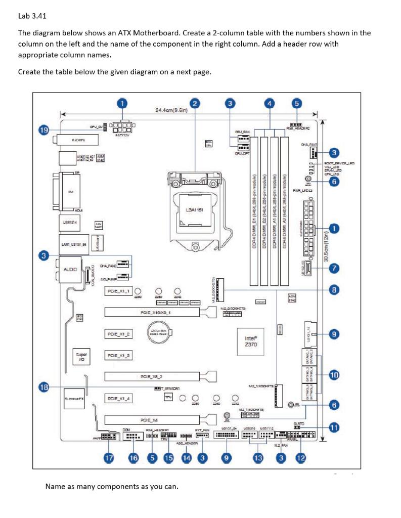 Figure 2-47 shows a diagram of an ATX motherboard. | Chegg.com Ask an expert. Figure 2-47 shows a diagram of an ATX motherboard. Label as many of the 19 components as you can. If you would like to print the diagram, look for "Figure 2-47" in the online content that accompanies this text at cengage.com. Not sure what other data is needed I need the 19 different portions of this MB labeled can be labeled ...