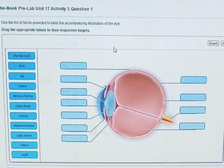 Labeling the Eye Quiz - By dilatory Top Contributed Quizzes in Science. 1. One Deadly Decoy: Science. 2. One Deadly Decoy: Science II. 3. Pick-a-Tissue (Histology Landmine) 4. Concentration Click-a-Pic: Astronomy. Labeling of the Eye Quiz - PurposeGames.com About this Quiz This is an online quiz called Labeling of the Eye There is a printable worksheet available for download here so you can take the quiz with pen and paper. Your Skills & Rank Total Points 0 Get started! Today's Rank -- 0 Today 's Points One of us! Game Points 16 You need to get 100% to score the 16 points available