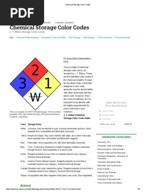 Chemical storage color codes. › chemical-storage-color-codesNFPA 704 Chemical Storage Color Codes - ThoughtCo Jan 26, 2019 · This is a table of chemical storage code colors, as devised by J. T. Baker. These are the standard color codes in the chemical industry. Except for the stripe code, chemicals assigned a color code generally may be stored safely with other chemicals with the same code. › laws-regs › regulations1910 | Occupational Safety and Health Administration 1910.161 - Fixed extinguishing systems, dry chemical. 1910.162 - Fixed extinguishing systems, gaseous agent. 1910.163 - Fixed extinguishing systems, water spray and foam. 1910.164 - Fire detection systems. 1910.165 - Employee alarm systems. 1910 Subpart L App A - Fire Protection › createJoin LiveJournal Password requirements: 6 to 30 characters long; ASCII characters only (characters found on a standard US keyboard); must contain at least 4 different symbols; Dangerous goods - Wikipedia Dangerous goods, abbreviated DG, are substances that when transported are a risk to health, safety, property or the environment.Certain dangerous goods that pose risks even when not being transported are known as hazardous materials (syllabically abbreviated as HAZMAT or hazmat).An example for dangerous goods is hazardous waste which is waste that has …