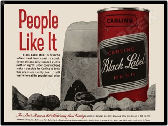 Carling Black Label - Etsy UK CARLING BLACK LABEL Beer Original 1963 Vintage Extra Large Color Print Advertisement - "People Like It" VintageAdarama (370) £17.61 1962 Carling Black Label Beer Vintage Ad, Advertising Art, Magazine Ad, Advertisement, Great to Frame. PlentifulPages (436) £10.74 Vintage 1959 Carling's Black Label Beer Print Ad AmericanCenturyShop (1,124) £14.98