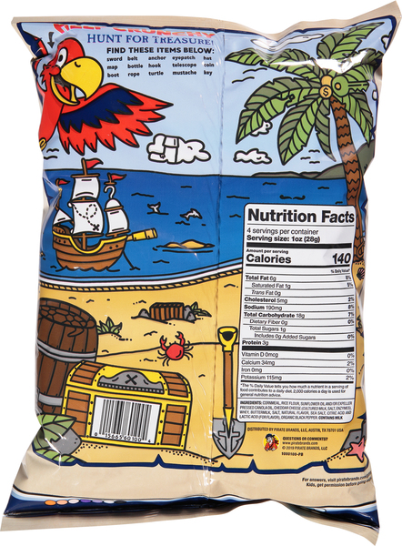 Pirate booty calories. Pirate's Booty: Too Good to Be True - The Washington Post Feb 19, 2002 ... There is no question that Pirate's Booty -- a cheese-coated puffed corn and rice snack so popular that it's made the pages of Vanity Fair ... Pirate's Booty Calories and Nutrition Information. Page 1 - Nutritionix Pirate's Booty ; Aged White Cheddar Baked Rice and Corn Puffs. 1 package, 100 ; Aged White Cheddar Cheese. 0.5 oz, 70 ; Aged White Cheddar Rice & Corn Puffs. 1 oz ... Coupons.com: Online Promo Codes and Free Printable Coupons Use Coupons.com for the best deals and biggest discounts when you shop online and in-store. Save money on every order with the most current promo codes, rewards, and free shipping offers. Amazon.com: Pirate's Booty Aged White Cheddar Cheese Puffs ... Pirate's Booty Aged White Cheddar Cheese Puffs contain 12 (1oz) snack-size bags; Perfect as lunch or movie night snacks for kids Always up to pirate standards, these cheese puffs are gluten free, peanut & tree nut free, and contain no artificial colors or preservatives; Each bag is just 140 calories, making them great for any matey!